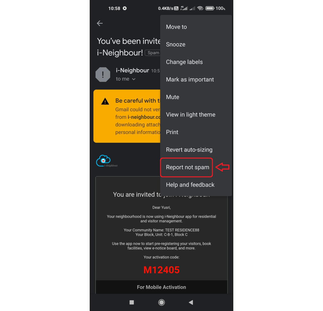 iNeighbour Activation / Reset Password Email Landed in SPAM/Junk (Temporary solution for Gmail Mobile account)