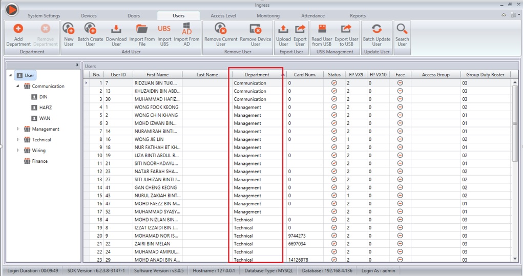 FingerTec has released a new version of Ingress (v3.0.5.10) recently, that provides more features and enhancement. In this latest version of Ingress, we have upgraded a new feature, where you can now filter up the users by groups or departments, to ease the process of searching users in the Attendance sheet and Reports.Benefit