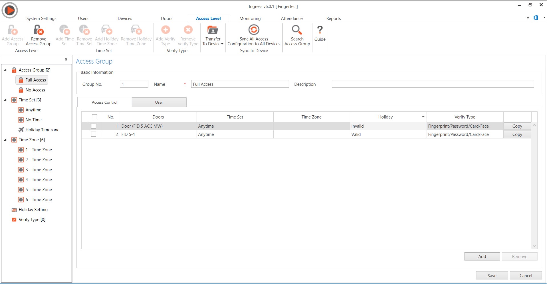 2. Change the default Holiday Timezone from 'No Access' to 'Full Access'.
