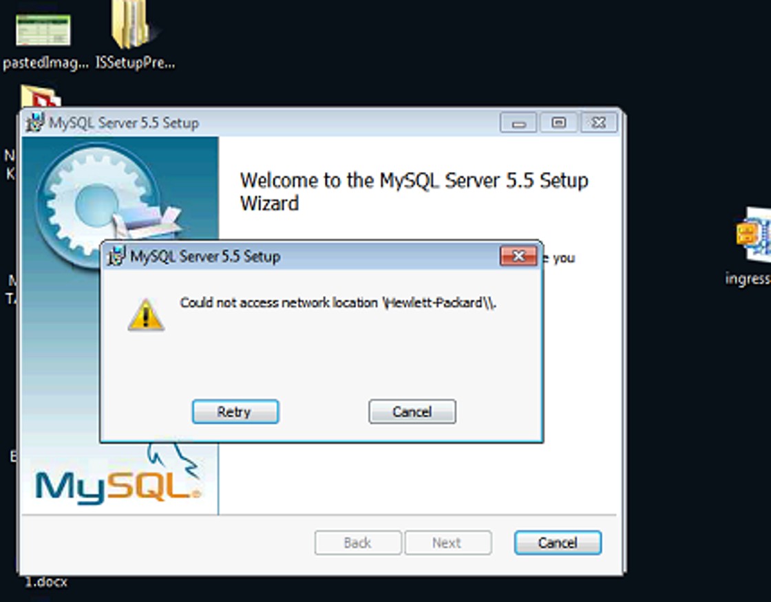 The following is the error you might get when installing Ingress and MySQL servers on a HP computer. This issue happens due to entry in the registry, and it is almost certainly the crud left behind by HP's operating system imaging software.