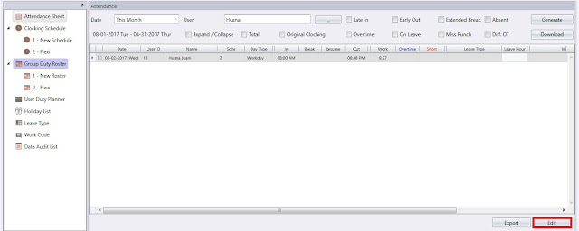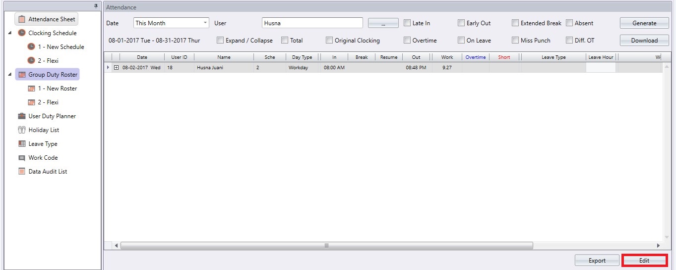 In the Attendance Sheet window, click on the Edit button.