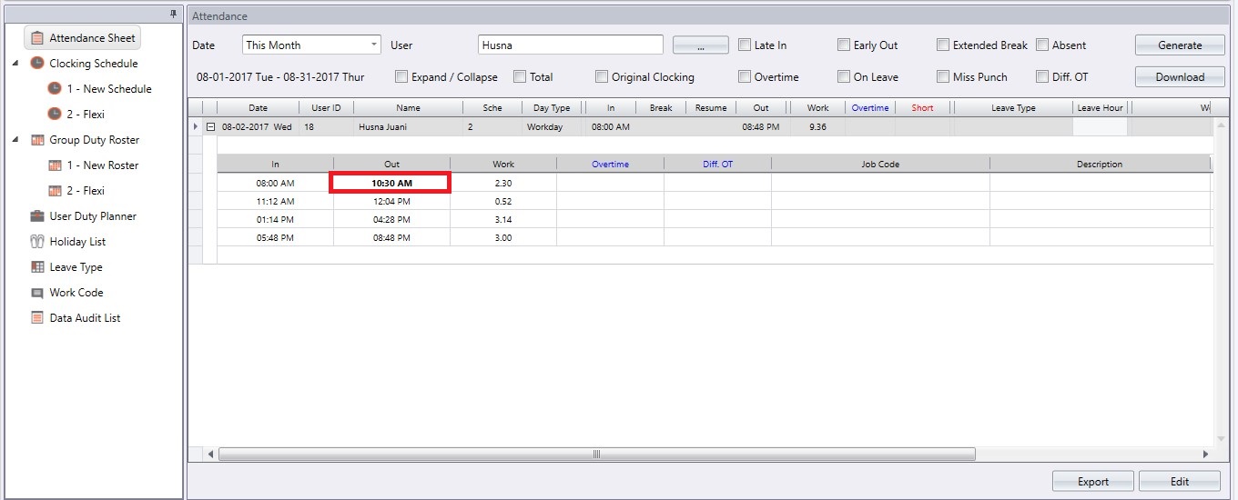 When using the Job Costing function in the Ingress & TCMS V3, there are situations where you may wish to edit data in your attendance sheet for report purposes. The steps to edit the transaction data in Flexi Job Costing is slightly different compared to the standard procedure.