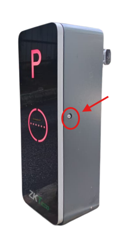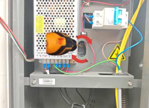 - Inside the cabinet, find the screw hole, use a screwdriver, and turn it clockwise until the barrier arm goes up