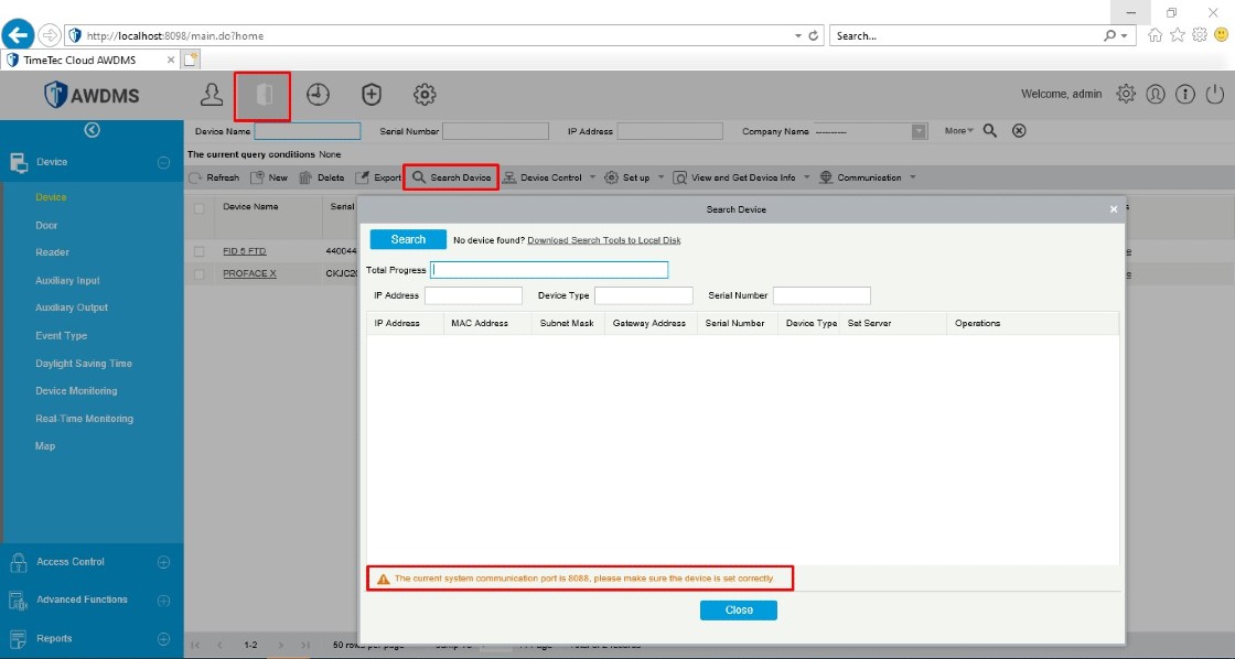 b. Kindly check the PC IP address for the PC installed and the Port Number for the device to connect with the AWDMS