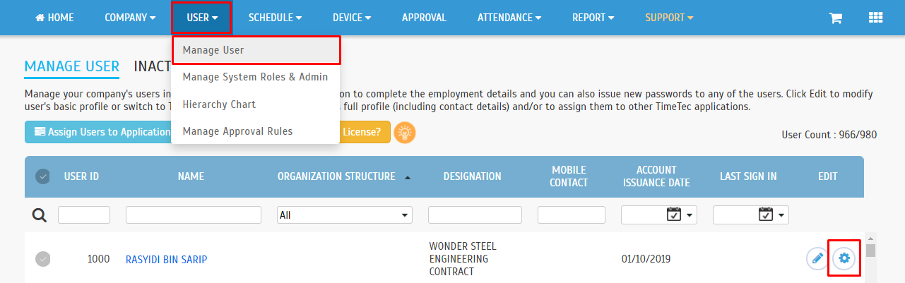 1. Go to User > Manage User > Leave setting > Option