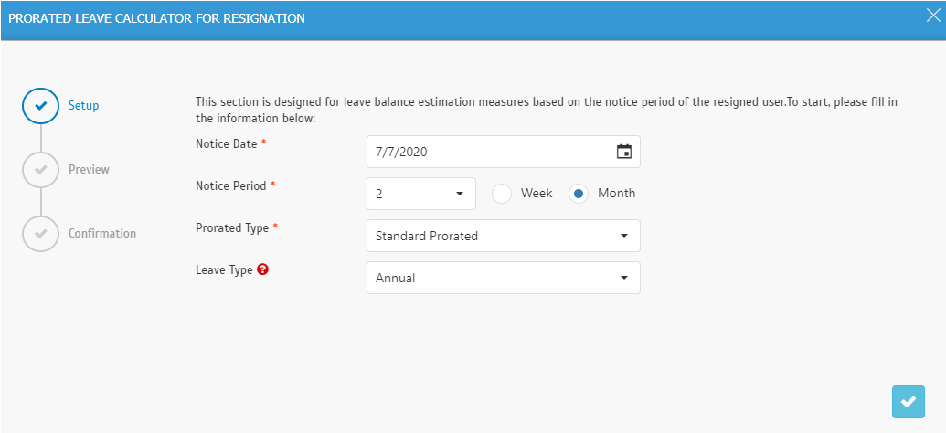 2. Click on the Prorated Button to apply the Prorated Leave Calculator for Resignation