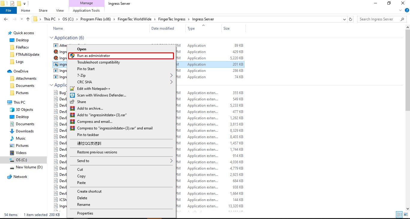 3) Copy and paste the tool into the TCMSv3 or Ingress Server folder. By default,i- TCMSv3 folder is located in C: > Program Files (x86) > FingerTec > FingerTec TCMS V3 > TCMS V3ii- Ingress Server folder is located in C: > Program Files (x86) > FingerTec Worldwide > FingerTec Ingress > Ingress Server4) Run the tool as an administrator
