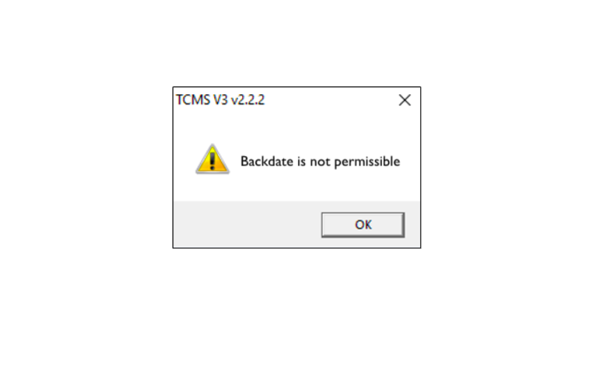 Steps to Solve “Backdate is not permissible” Error in the TCMSv3/Ingress Software