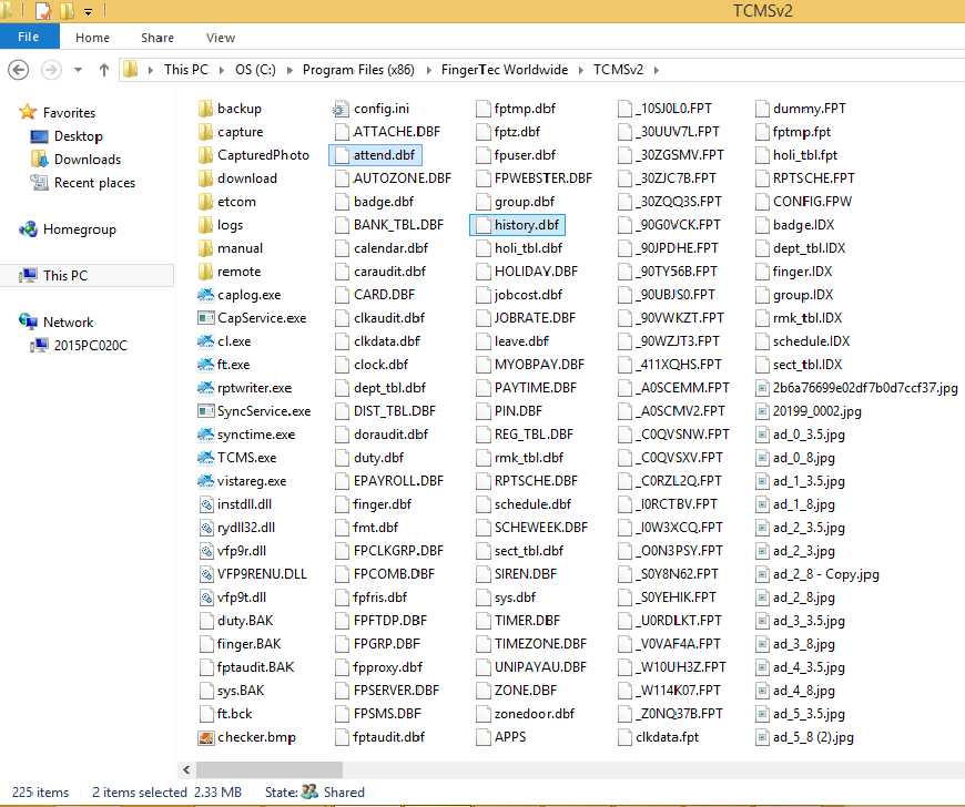 FingerTec Worldwide\TCMS V2. Delete all the .CDX file and remove database file