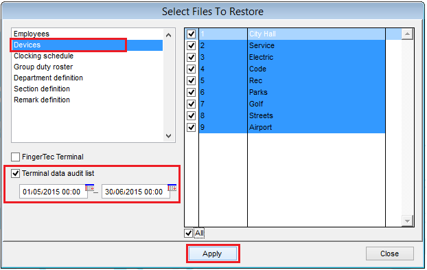 2. To restore Transaction Log, you can select Devices > tick on Terminal Data Audit List >