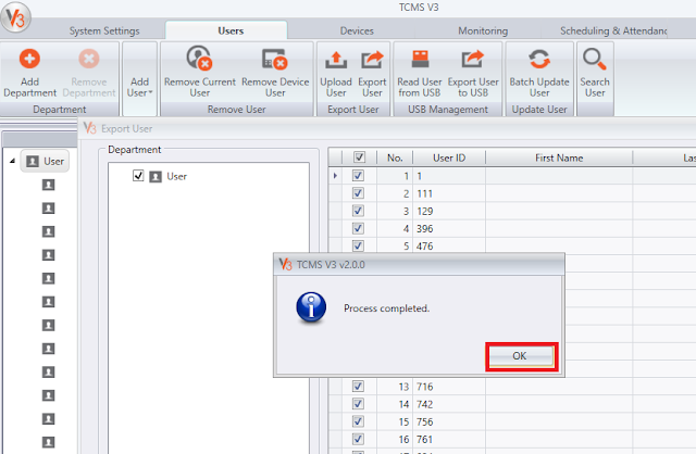 Just like how users can be downloaded from a terminal into a USB flash disk, they can also be uploaded from TCMS V3 into a USB flash disk. The data can then be uploaded to your FingerTec terminals.