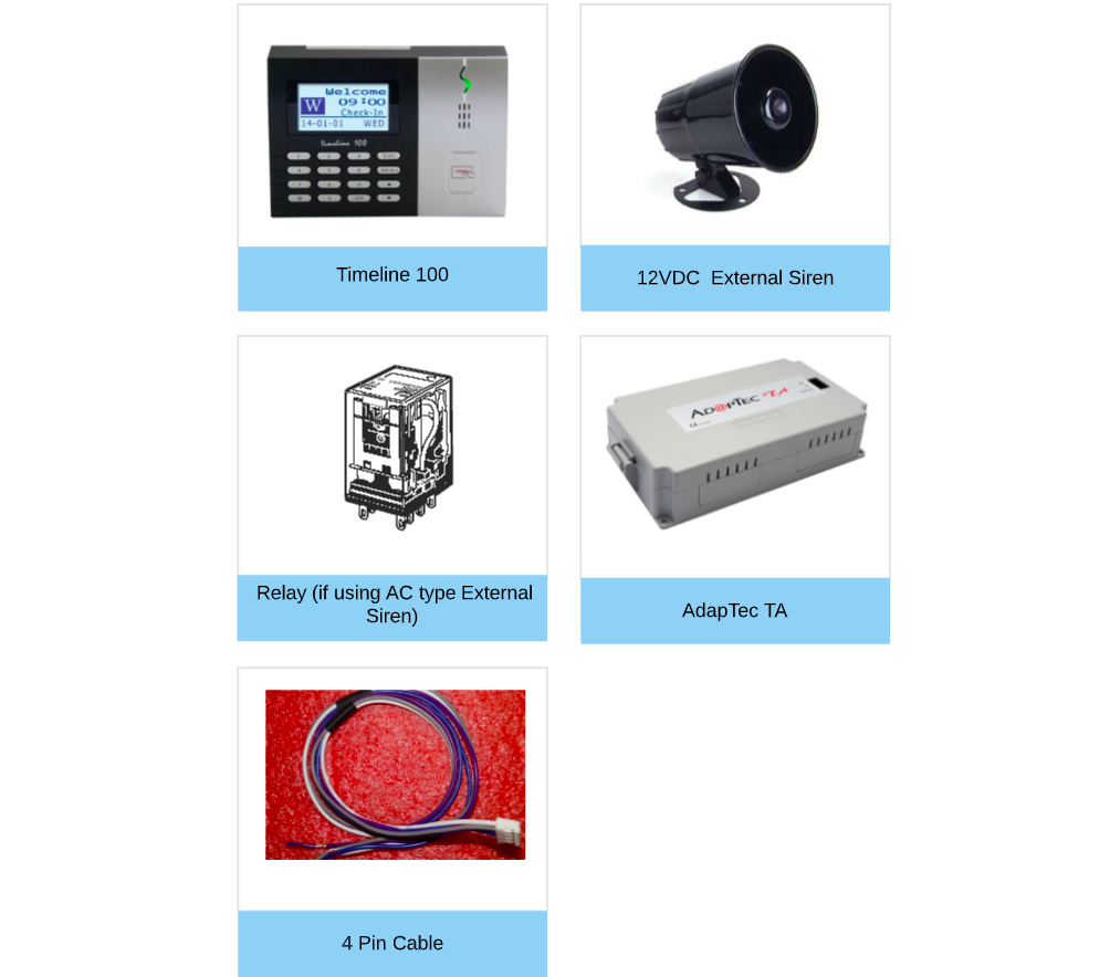 External bell is used to alert or remind user of break time, shift change or for safety purposes. It is generally installed in schools, factories, warehouses and other organizations. A schedule bell specifies the start time and duration of one or more instructional periods of a daily pattern.Requirements StepsConnect External siren to Timeline 100- Open the Timeline 100 back casing screw- Connect the cable 4 pin connector to the ‘Alarm’ port from the MCU.Wiring Diagram |