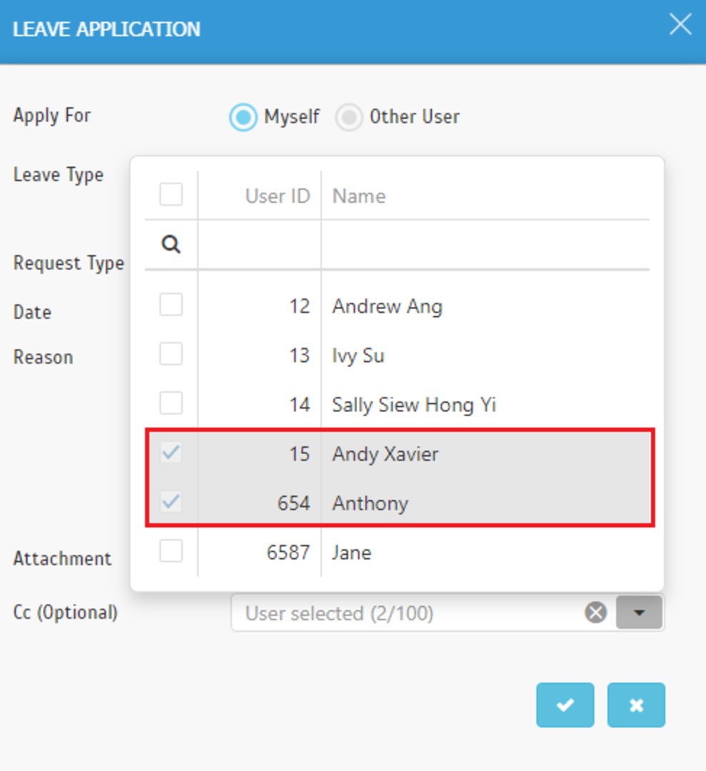 Apply Leave Popup - Disabled Uncheck Checkbox of Compulsory CC Recipient(s)
