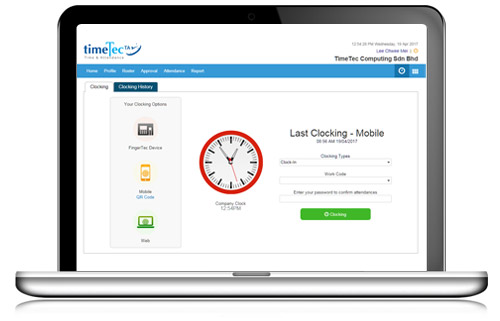 TIMETEC PROVIDES 3 MAIN CLOCKING OPTIONS1. FingerTec biometrics terminal clocking2. Web clocking through a PC3. Mobile clocking through TimeTec TA AppFingerTec Biometrics Terminal Clocking is suitable for a company that imposes these limitations and has these requirements listed below.• Employees cannot carry smartphones during work time for example in factory, laboratory, commercial kitchen, hospital and etc.• The company requires simple clocking only, i.e. to record in and out time.• The company does not require everybody to access into TimeTec TA.• The management wants to strictly avoid buddy-punching• The company wants to install terminals that have both time attendance and door access control function.Web Clocking is suitable for a company that have these limitations and requirements.• For staff that using PC with internet connection as their daily working tool, for example staff from HR, admin & finance department.• The company that requires simple clocking only, i.e. to record in and out time• The Company that doesn't allow employees to carry smartphones during work time.• The company that requires simple clocking only, i.e. to record in and out time• The company that does not require everybody to access into TimeTec TAMobile clocking is more suitable for general knowledge workers in the office and field workers that require frequent travels, constantly mobile and flexible.