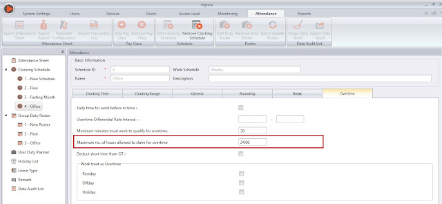 For further example, if Maximum no. of hours allowed to claim for overtime is set to 4.00, the system will limit overtime calculations to 4 hours only even if an employee works for more than that duration as per the example below.Early Time for Work Before IN Time (Weekly/ Daily)